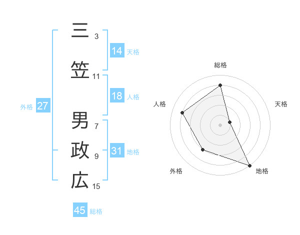 三笠 男政広さんの総格は45画の4点