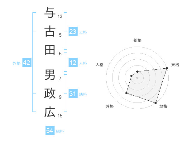 与古田 男政広さんを姓名の画数から五運を鑑定