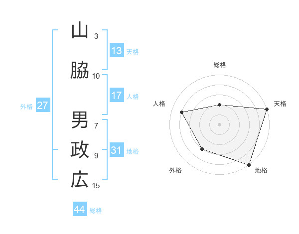 山脇 男政広さんを姓名の画数から五運を鑑定