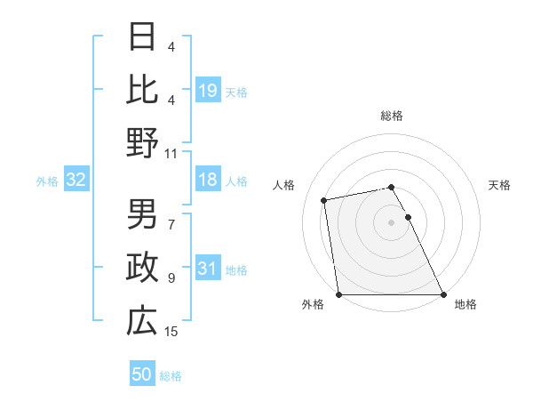 日比野 男政広さんを姓名の画数から五運を鑑定