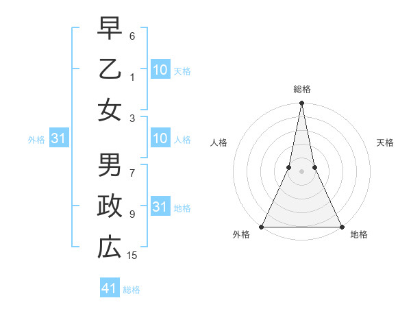 早乙女 男政広さんを姓名の画数から五運を鑑定