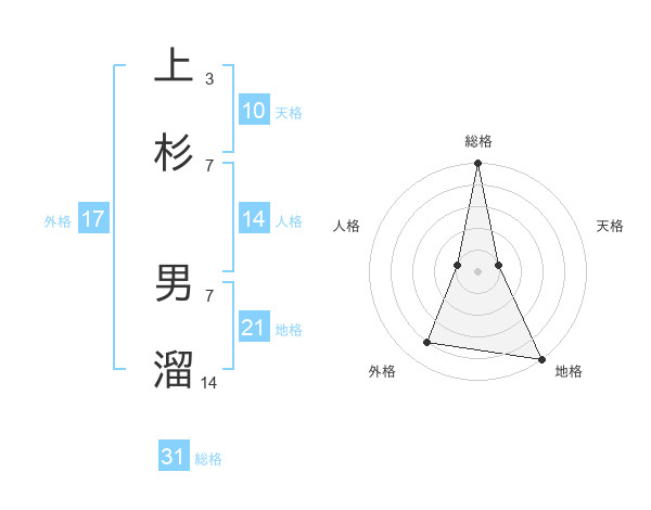 上杉 男溜さんの総格は31画の5点!