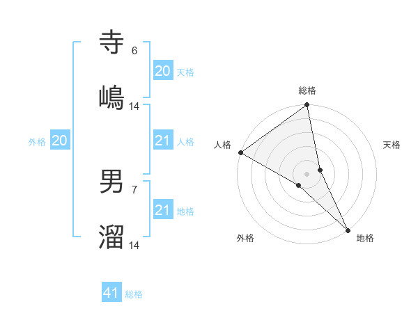 寺嶋 男溜さんの総格は41画の5点!