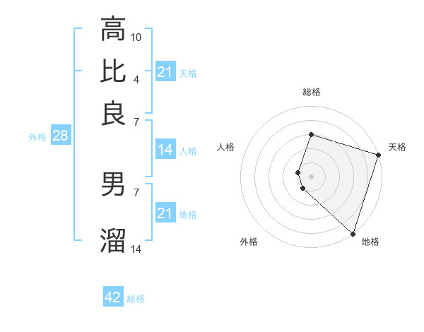 高比良 男溜さんの天格は21画の5点!