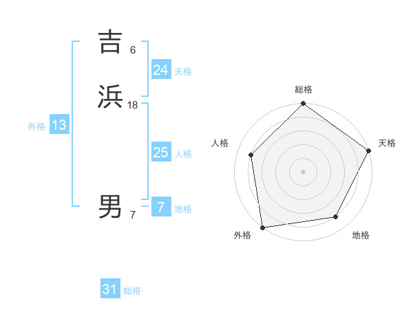 吉浜 男さんの総格は31画の5点!