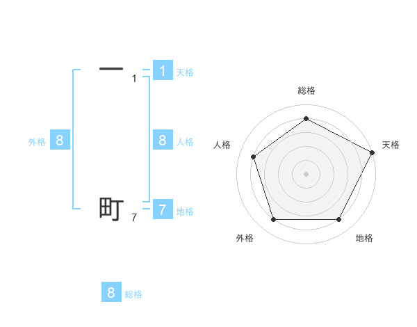 一 町さんの総格は8画の4点!