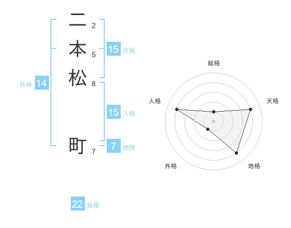 二本松 町さんの総格は22画の1点!