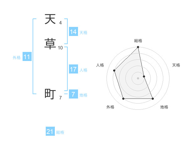 天草 町さんの総格は21画の5点!