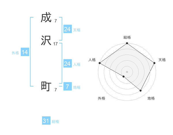 成沢 町さんの総格は31画の5点!