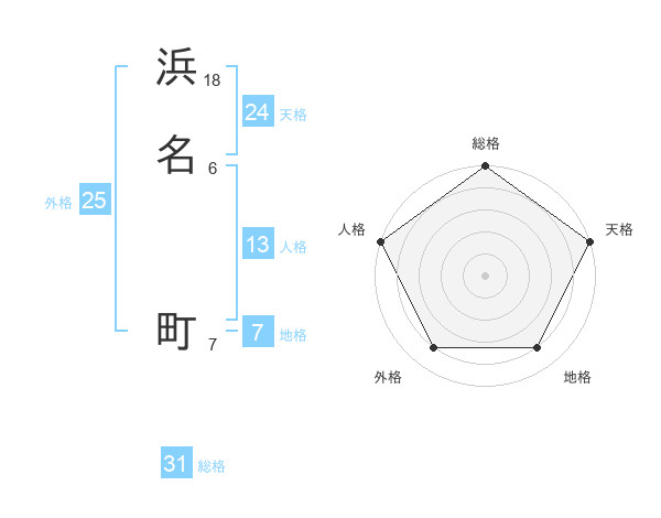 浜名 町さんの総格は31画の5点!