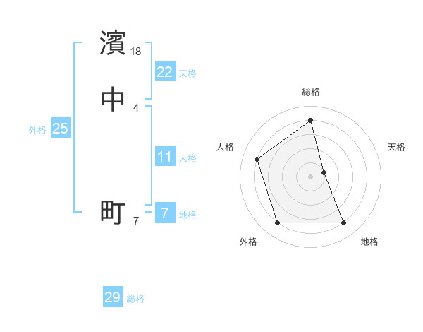 濱中 町さんの総格は29画の4点!