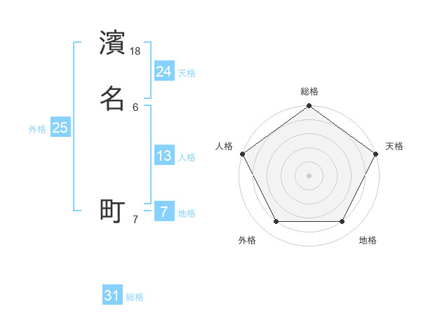 濱名 町さんの総格は31画の5点!