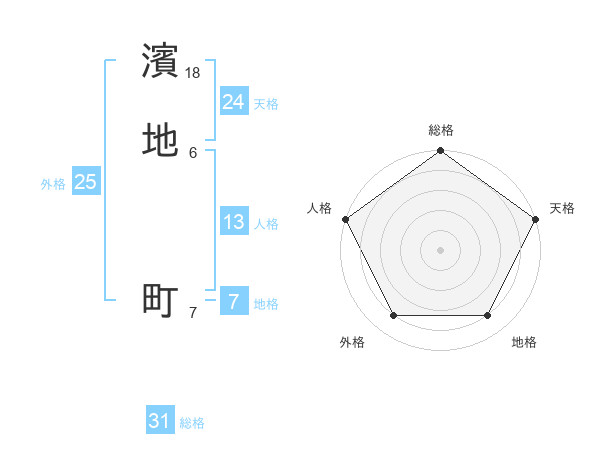 濱地 町さんの総格は31画の5点!