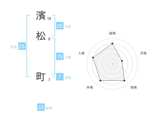 濱松 町さんの総格は33画の4点!