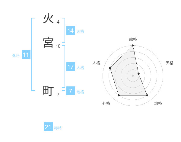 火宮 町さんの総格は21画の5点!