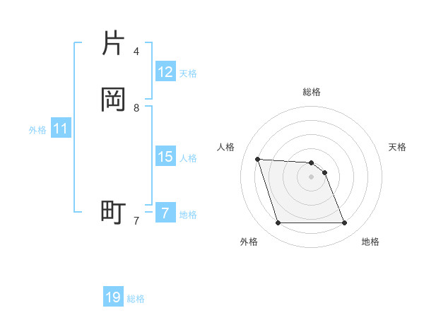 片岡 町さんの総格は19画の1点!