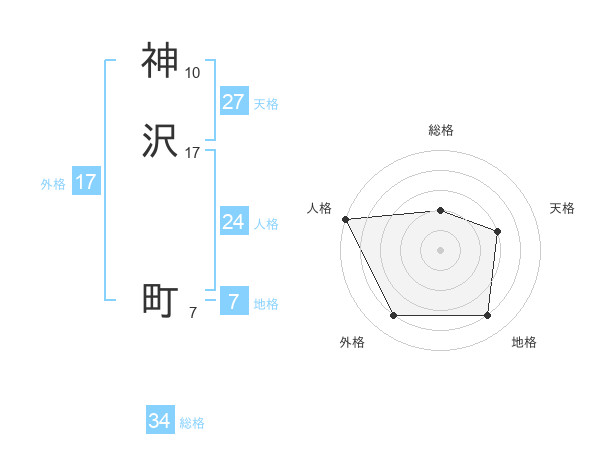 神沢 町さんの総格は34画の2点!