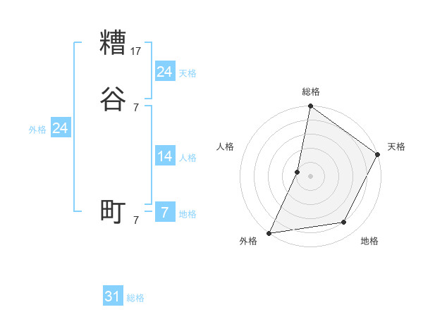 糟谷 町さんの総格は31画の5点!