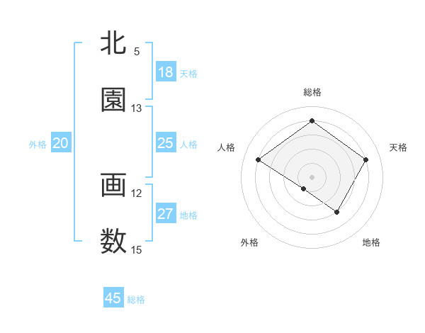 北園 画数さんの総格は45画の4点!