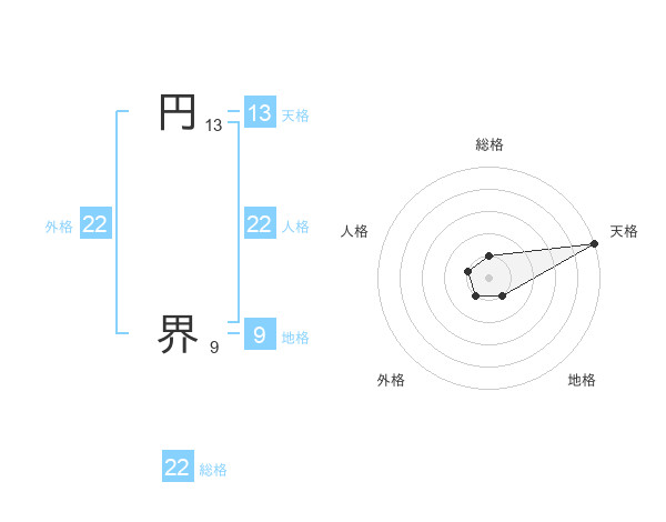 円 界さんの総格は22画の1点!
