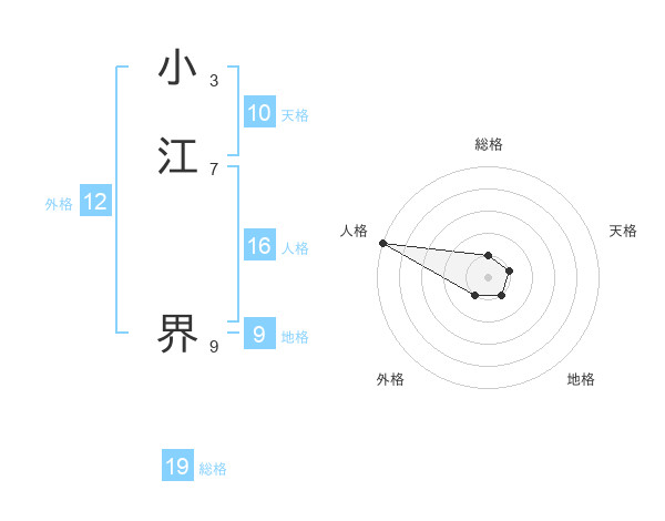 小江 界さんの総格は19画の1点!