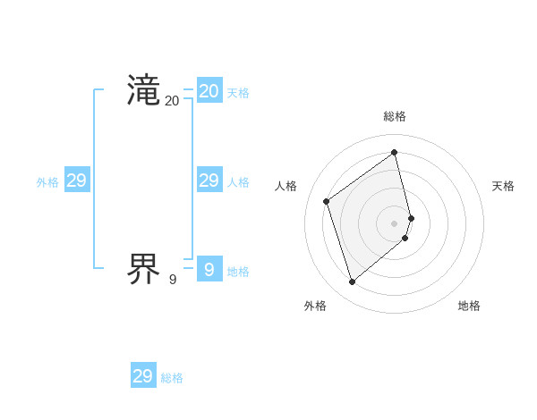 滝 界さんの総格は29画の4点!