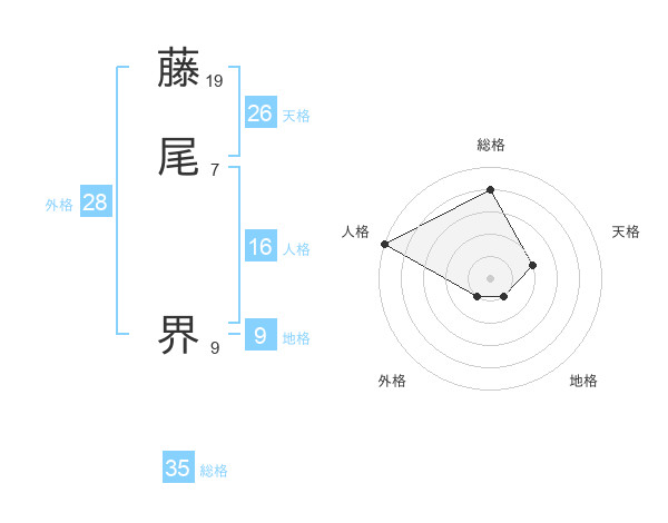 藤尾 界さんの天格は26画の2点!