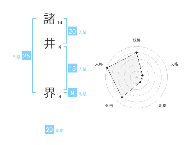 諸井 界さんの総格は29画の4点!
