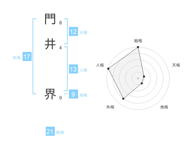 門井 界さんの総格は21画の5点!