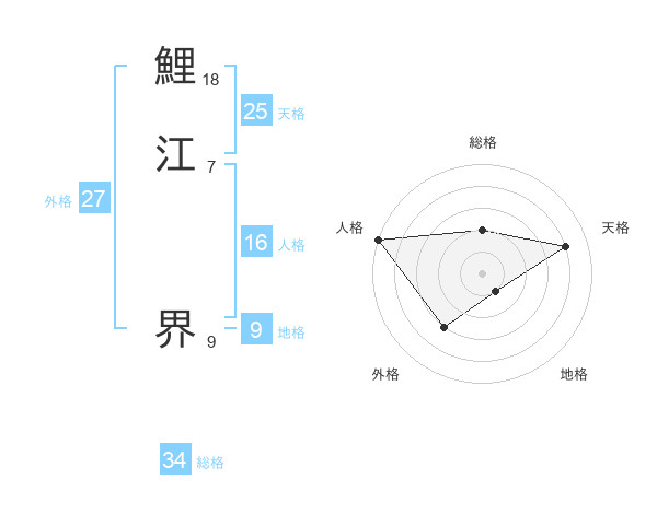 鯉江 界さんの総格は34画の2点!
