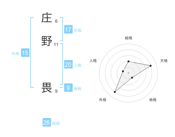 庄野 畏さんの総格は26画の2点!