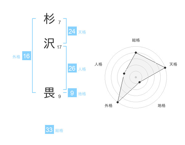 杉沢 畏さんの総格は33画の4点!