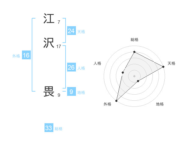 江沢 畏さんの総格は33画の4点!