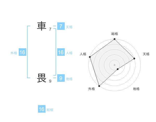 車 畏さんの外格は16画の5点!