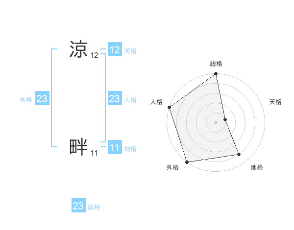 涼 畔さんの外格は23画の5点!