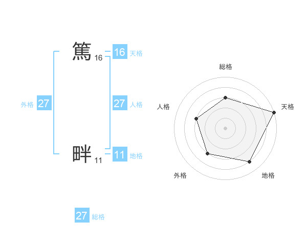篤 畔さんの総格は27画の3点!