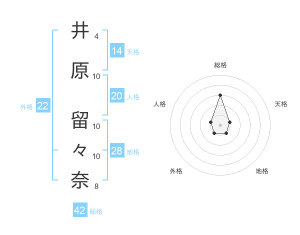 井原 留々奈さんの総格は42画の3点!