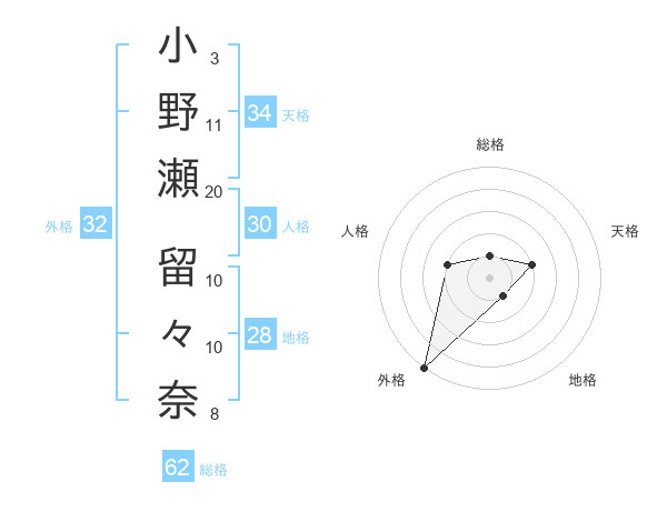 小野瀬 留々奈さんを姓名の画数から五運を鑑定