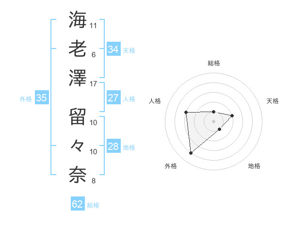 海老澤 留々奈さんを姓名の画数から五運を鑑定