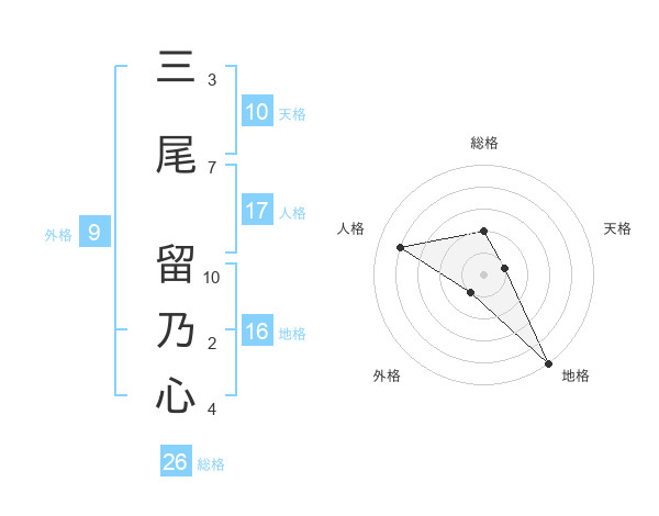 三尾 留乃心さんの総格は26画の2点!