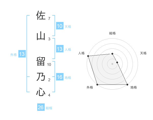 佐山 留乃心さんを姓名の画数から五運を鑑定