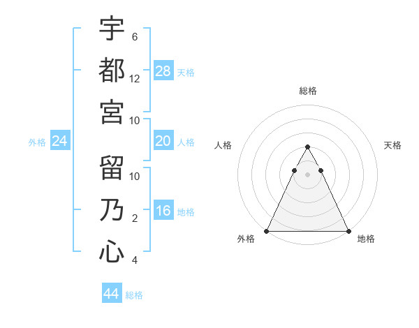 宇都宮 留乃心さんを姓名の画数から五運を鑑定