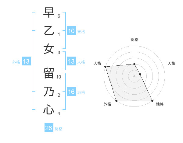 早乙女 留乃心さんを姓名の画数から五運を鑑定