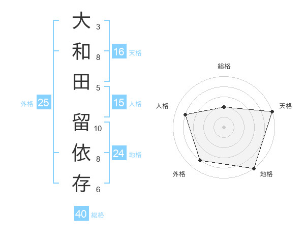 大和田 留依存さんを姓名の画数から五運を鑑定