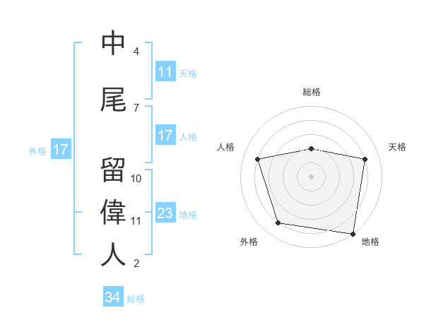 中尾 留偉人さんを姓名の画数から五運を鑑定
