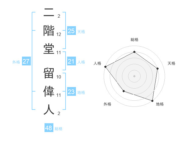 二階堂 留偉人さんを姓名の画数から五運を鑑定