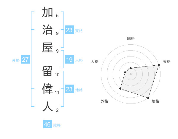 加治屋 留偉人さんを姓名の画数から五運を鑑定