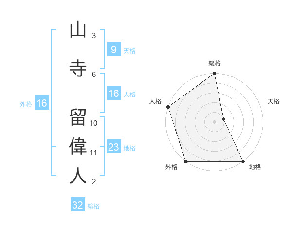 山寺 留偉人さんを姓名の画数から五運を鑑定