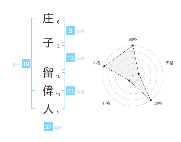 庄子 留偉人さんを姓名の画数から五運を鑑定