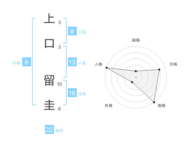 上口 留圭さんの総格は22画の1点!